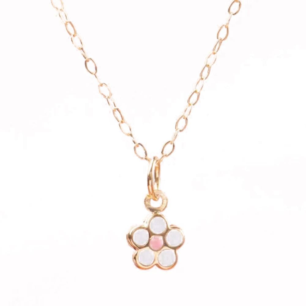 564سلسال زهرة الروز ذهب عيار 18 مطلي بالمينا ( وردي - ابيض ) يبدو لطيفًا لصغيرتك.