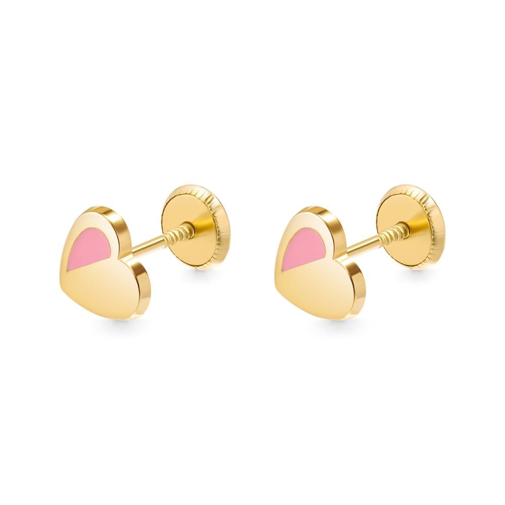 509أقراط القلب الوردي ذهب عيار 18 يتميز بجزء مطلي بالمينا ( وردي ) و الجزء الاخر من الذهب الذي يضيف الفخامة لإطلالة طفلتك